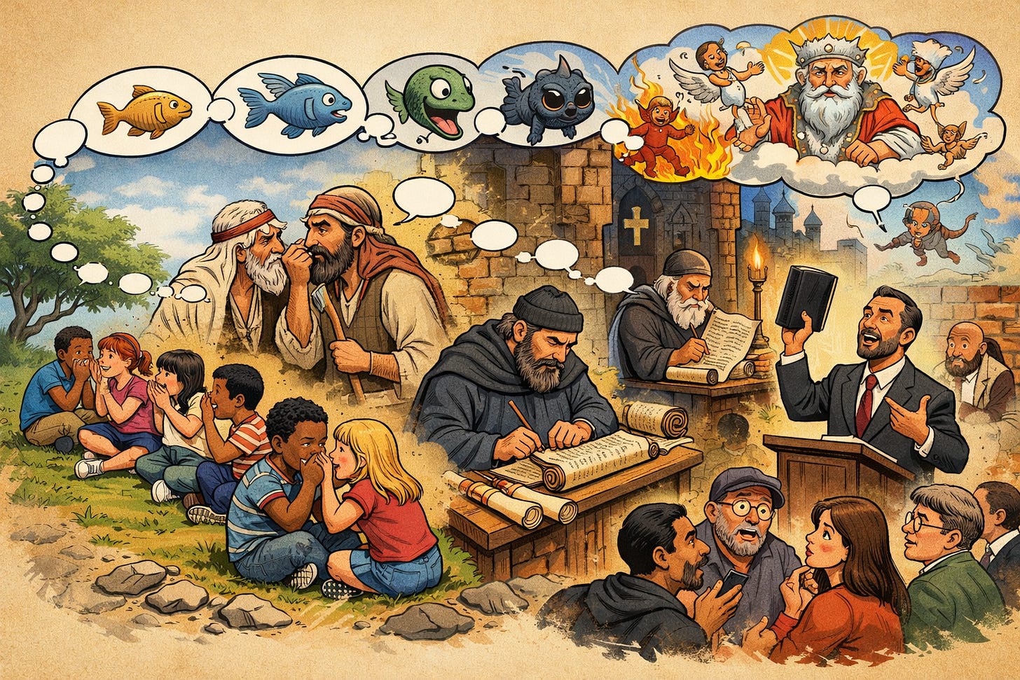 The Telephone game teaches a lesson that theology works tirelessly to suppress: transmission matters. Medium matters. Messengers matter. Once a message passes through human minds, it becomes human. To deny this is to deny the very nature of language, memory, and culture.